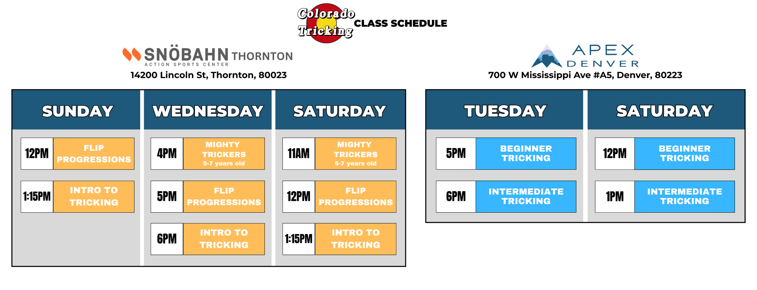 Our goal is to open the first Tricking Gym in Colorado. Help us achieve that goal! Take our classes, send us a student, or you can just donate to support us!